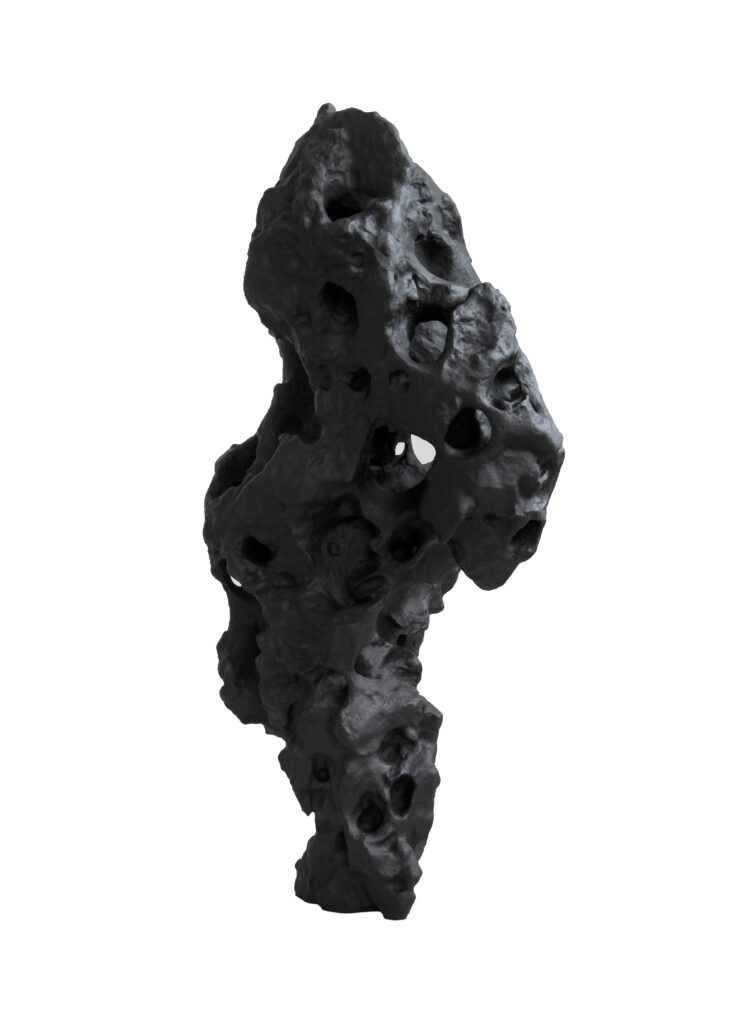 Zhang’s art perforates the surface of East-West fusion and the idea of time, expressing his strikingly unique and profoundly perceptive musings. Exploring the essence of these topics, his art may not be instantaneously interpretable by many; however, this is also the very quality that elevates the intellectual element of his works, inviting viewer participation. Zhang demonstrates his gift in the artistic manipulation of time by re-creating the ancient scholar rock with modern materials such as silicone rubber. These ornate rocks, called Taihu Rocks, originated from Suzhou and are traditionally appreciated and prized by Chinese Literati. They are also symbolic of traditional Chinese culture and focus on the changes in aesthetics, culture and social patterns across time. Creatively, he has resurrected a fragment of history and propelled episodic moments from that distant time to this present age. These consequential works are evidently contemporary and undoubtedly unique.
