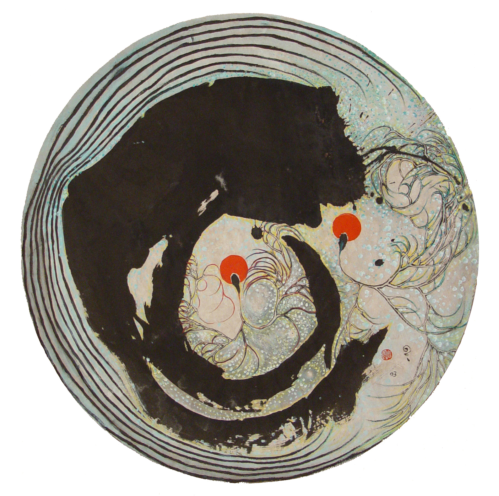 Using forceful lines derived from the stone-drum inscription of the Warring States period in China (403-221 BCE) coupled with her dense ink washes, she explored through her paintings the inner workings of the mind and its relationship to the mysteries of the universe. iPRECIATION is delighted to showcase a few of the artist’s most esoteric and highly sought after creations.