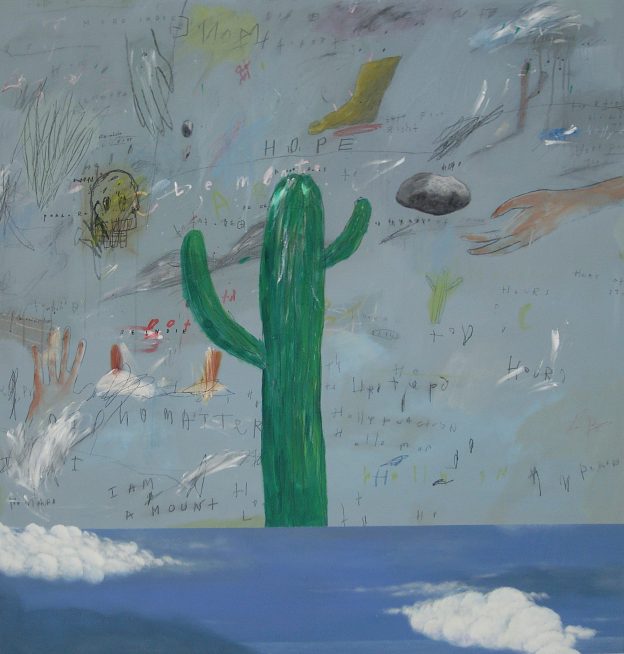 His paintings are powerful satirical observations on social degeneration through the alarmingly haunting aesthetic of faceless figures mummified in newsprint. Inspired by the Indonesian government’s transitional period from the “Orde Baru” (New Order) to the “Orde Reformasi” (Reformation Order) in 1999 and its resulting impact on society, his works struggle with the themes of political oppression, the ironic role of the media, and above all, a strong sense of disappointment in prevalent ideologies, and disenfranchisement of the individual.