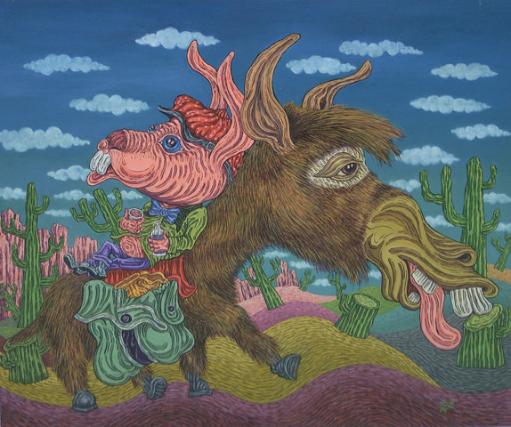 Obtaining inspiration from the realm of the phantasmal, Riki has infused this mystifying theme with his fascination for the proverbial, enabling the artist to create wild new-fangled characters that ironically, possess an inherent shade of humanity that is aptly reflective of the nuances of urbanised, ‘civilised’ behaviour.